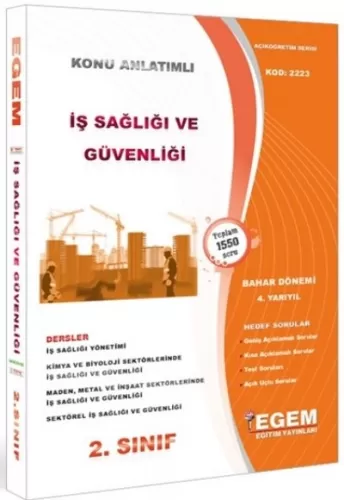 Egem Yayınları Iş Sağlığı Ve Güvenliği 2 Sınıf 4 Yarıyıl Bahar Dönemi Konu Anlatımlı Soru Bankas